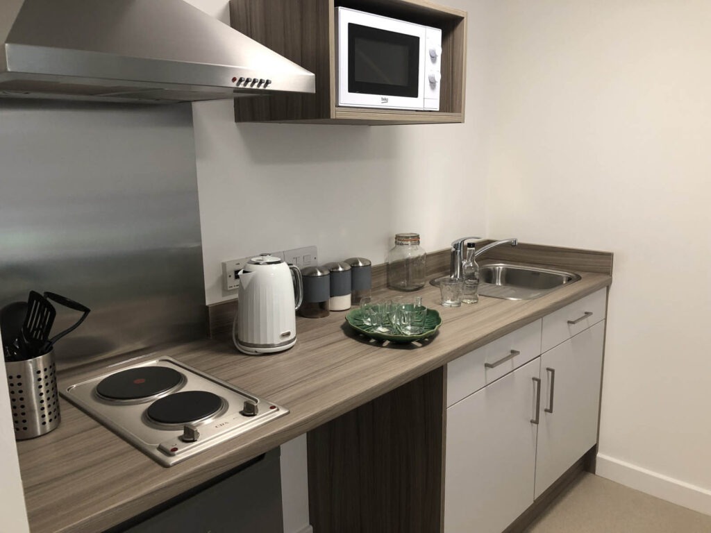 At Q studios student accommodation, we offer different studios based on the preferences and budget of the students. Each of the studio is adorned with quality furniture and amenities including a comfy double bed that will recharge students for the next day, a wardrobe and storage compartments to keep belongings safe, a study desk where you can study and score top class, fast and unlimited wifi so that your calls with your family and friends stay undisturbed. Residents also get a private bathroom with no hassle of sharing and their own small kitchenette equipped with a refrigerator, cooker, microwave and sink so that students can cook up storms in their kitchen and also host parties in their rooms.