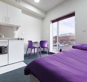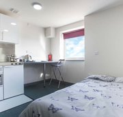 Each studio apartment contains Bed (bedding not included), an En-suite shower room as well as Desk and study chair . Your spacious Wardrobe (with drawers), provides great storage, whilt there are great Kitchen facilities and your own Dining area (table or breakfast bar).