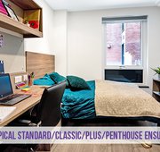 Superior Ensuite Rooms offer a spacious 19m2 within a shared flat for 6 students. Superior Plus are our largest ensuite rooms at Coppergate at an even more generous 20m2 providing plenty of space for a full-size double bed instead of our usual ¾ size bed, so you can stretch out and unwind! Superior Plus rooms are within a shared flat of 7 & 8 students. All prices include utility bills (subject to terms and conditions).