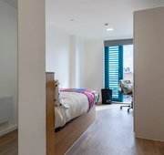 Situated between floors 2 to 5. A 13sqm (approx.) ensuite bedroom with a small double bed, study space and under bed storage. Enjoy a shared kitchen and living space equipped with a TV.
