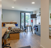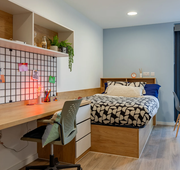 Situated on floors 3 to 5. A 19sqm (approx.) studio bedroom with a small double bed, study space, kitchenette, dining area and under bed storage. Enjoy a self-contained kitchen and living space equipped with a TV. Plus, you can share with a partner for no extra cost!