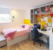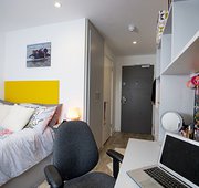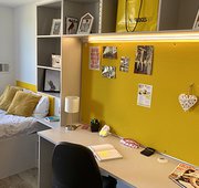 This cleverly designed study bedroom (12.9 m2-13.6 m2) sits within a shared apartment of either 6,7 or 8 bedrooms. Private study area Small double bed with under-bed storage En-suite shower room Large, modern communal kitchen equipped with a flat-screen TV, your own storage, and fridge space.