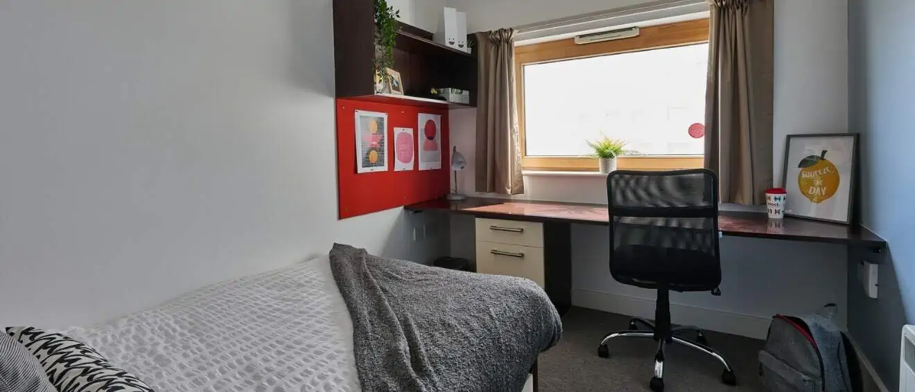 A stunning selection of completely furnished flats with individual bedrooms, bathrooms, a communal kitchen, and living areas are available at Heantun Point Wolverhampton. The bedrooms have a double bed, a study desk, and a large wardrobe. In addition, students can take advantage of the numerous common areas, including the basketball court, outdoor courtyard, fully equipped gym, and movie theatre at Heantun Point. Among other amenities, the rent includes laundry facilities and blazing-fast free WiFi at Heantun Point student accommodation.