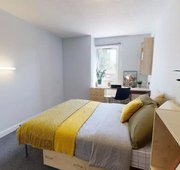 FIVE100-031125Giving you all the same features as space as our Silver En Suite Plus' these rooms have the added benefit of being refurbished, with a contemporary look and feel. Your room comes with small double bed, hardwood floors and lots of storage. You’ll share a kitchen and living area with up to 3 others, making for a great social vibe. With building facilities including a laundry and an outdoor courtyard for sunny days, you’ll be set up for a great student lifestyle.