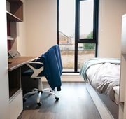 Communal kitchen and living space with 12 students Small double Wardrobe, underbed storage, full-length mirror, personal study space with desk and chair 10m² approximately Shared bathroom. 2-3 students per bathroom additional toilet downstairs