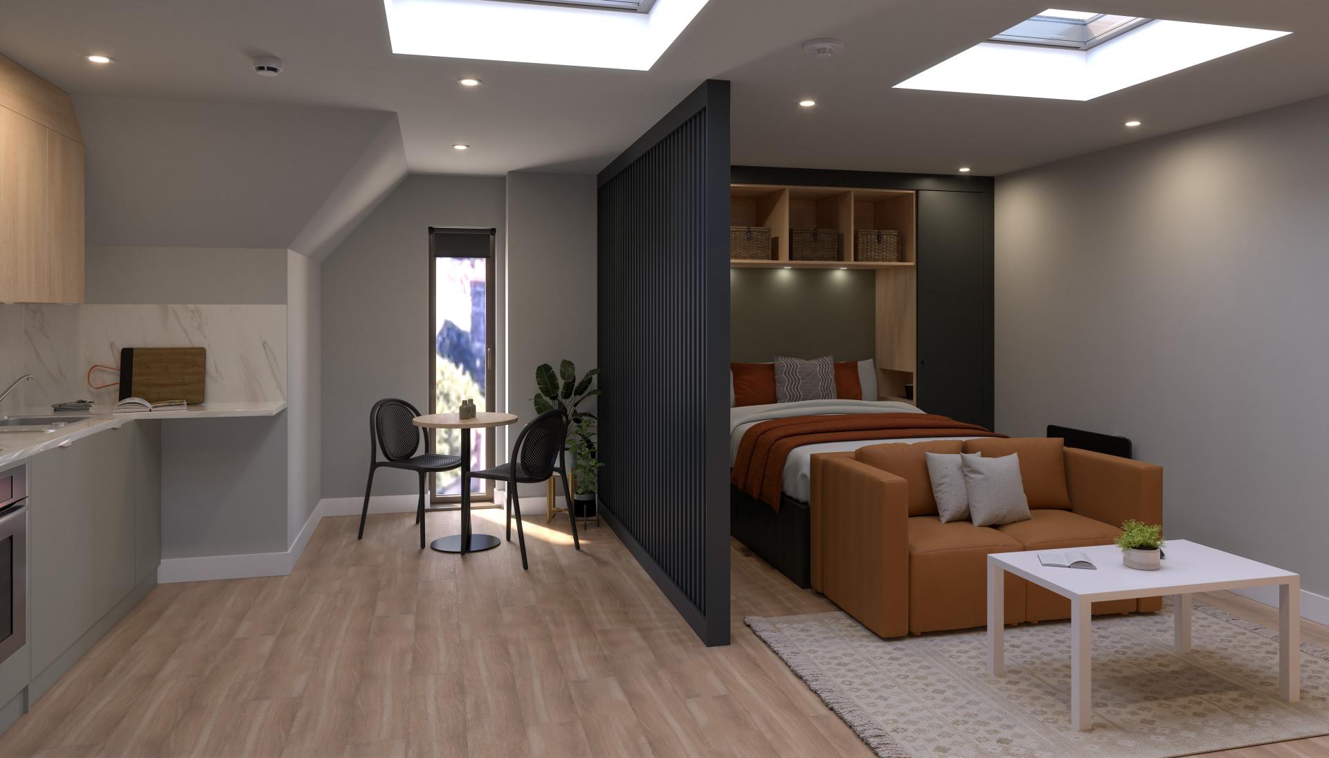 Your personal sanctuary designed for positive living. With calming wood textures and soft pastels, this studio offers a peaceful retreat from busy student life. Thoughtful storage solutions, a luxury en-suite, and a fully equipped kitchenette make everyday living effortless. Whether you’re cooking, relaxing, or hosting friends, every detail helps you feel right at home from day one. All-inclusive utilities and a double bed ensure comfort and convenience, letting you focus on making the most of your university experience. **Price may vary according to the floor level**