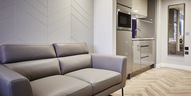 The Smart Studio (24m2) serviced apartment is the perfect pad for you. Combining a stylish hotel room with luxurious ensuite bathroom, a full kitchenette, sofa and workspace, ideal for your student living.