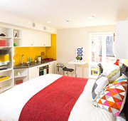En-suite flat with access to shared kitchen and living space. (Range of room layouts available). 15.2m2 average size.
