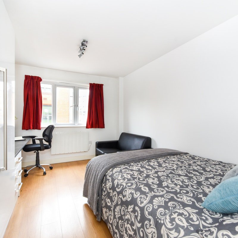Your own en-suite bedroom and shared kitchen and living space in a 4 bedroom flat 3/4 bed En-suite bathroom with shower toilet and basin Underbed storage, desk, chair, wardrobe and chest of drawers 15-20m² approximately